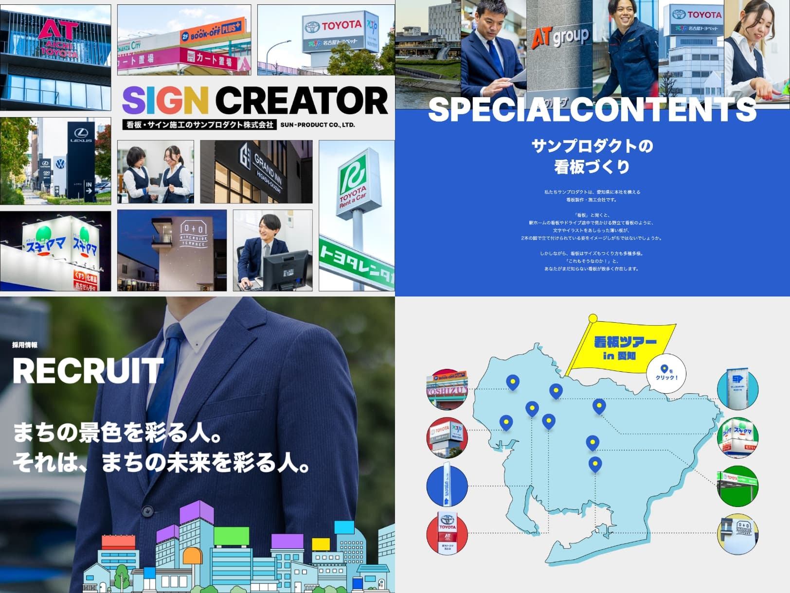 大手自動車ディーラーや各商業施設などから依頼を受け、看板の企画・デザイン・設計・製造・施工・アフターフォローを一貫して行う看板製作会社さまの、採用コンテンツを含めた企業サイトのフルリニューアルを提案しました。