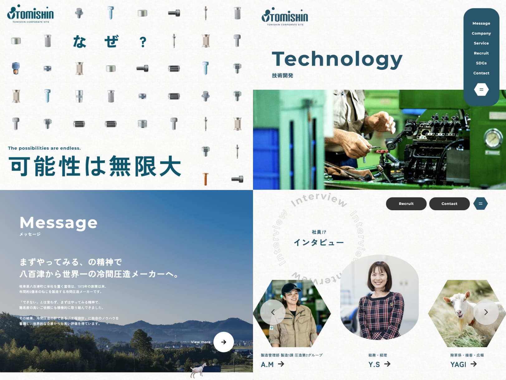 年間約5億本のねじを製造する、冷間圧造メーカーさまのコーポレートサイトです。採用活動に課題を抱えていたため、企業サイトの役割を担いつつも採用に重きを置いてサイトのフルリニューアルを行いました。