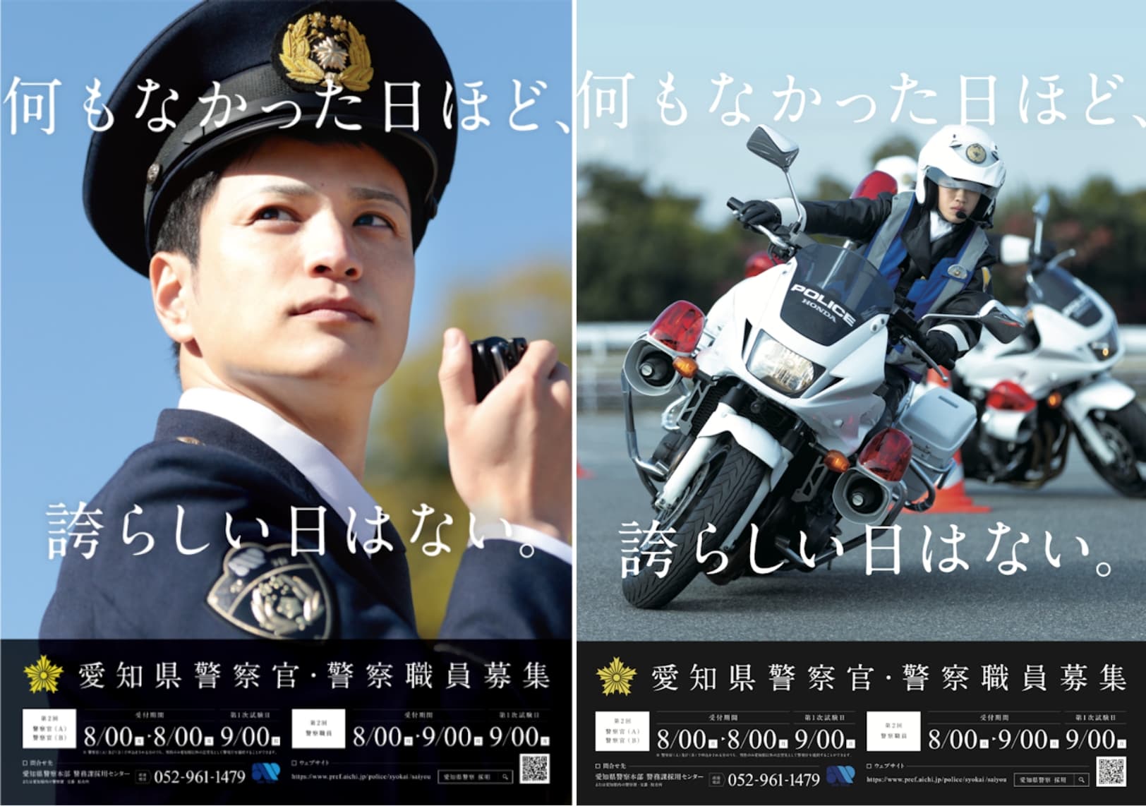 “人々の安全・安心を守る” という警察官の使命感と地道な努力を、キャッチコピーに落とし込み制作。駅などの主要施設に掲示されるポスターや採用サイト等へと展開し、それらを見た人たちからSNSを通じて大きな反響を呼びました。