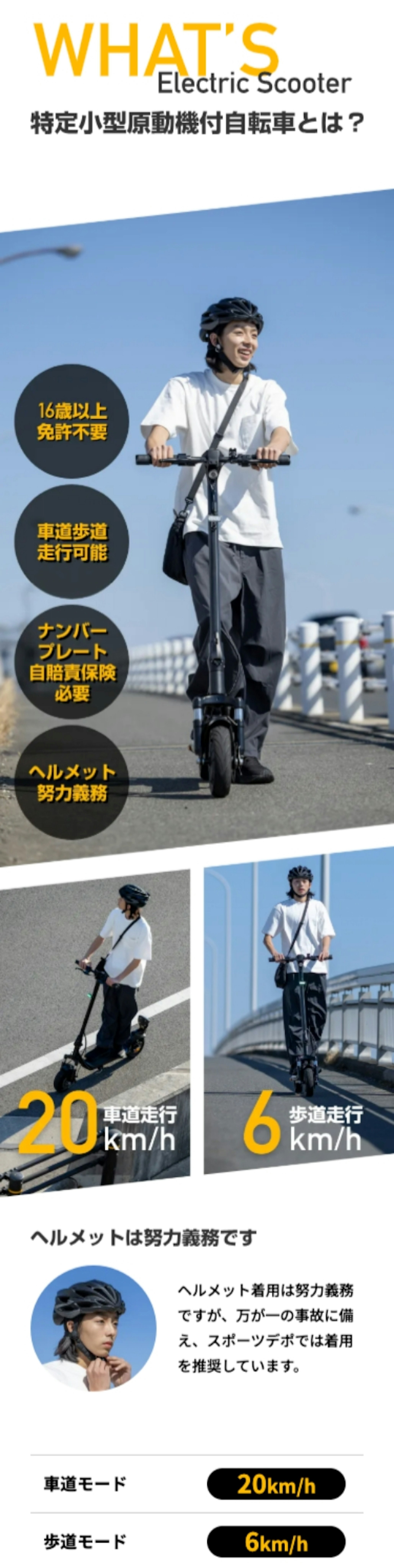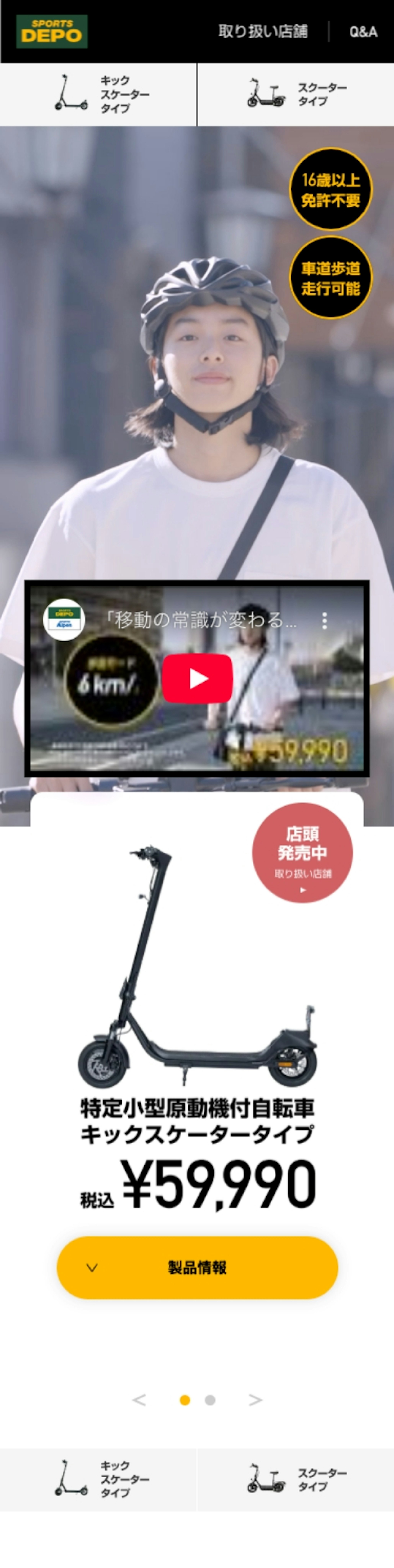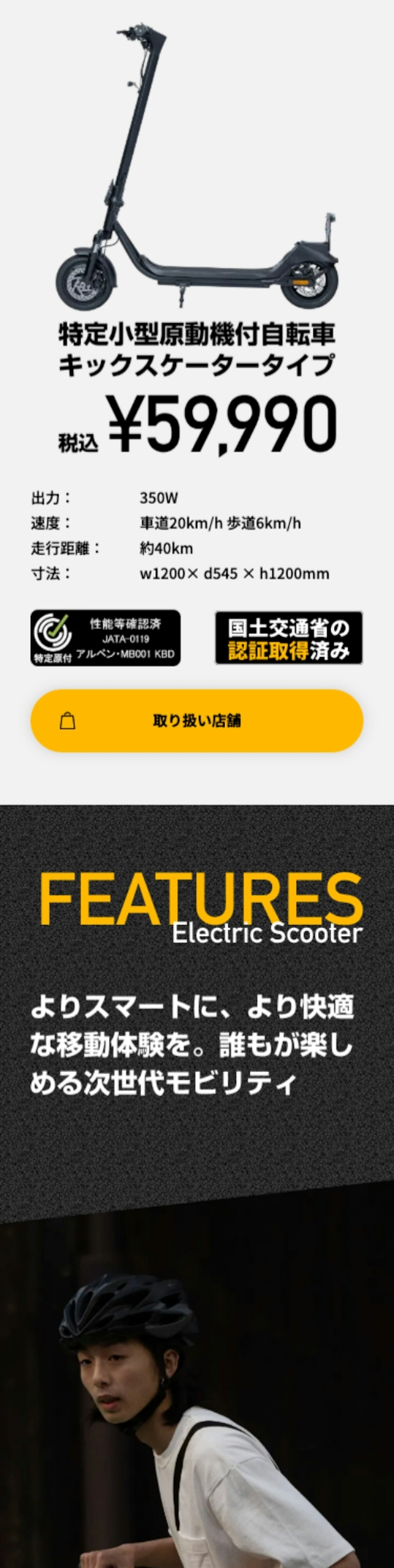法改正により新たな市場が生まれた「特定小型原動機付自転車」の特設販売サイトを制作いたしました。まだ認知度が低いこの新しいモビリティについて、法律のルールや安全な乗り方を解説し、消費者の不安を払拭することが重要な課題でした。製品の魅力を伝えるだけでなく、信頼性の高い情報提供を行うことで、市場の黎明期におけるリーディングストアとしての地位を確立し、新たなライフスタイルを提案することで販売へと繋げることを目指しました。