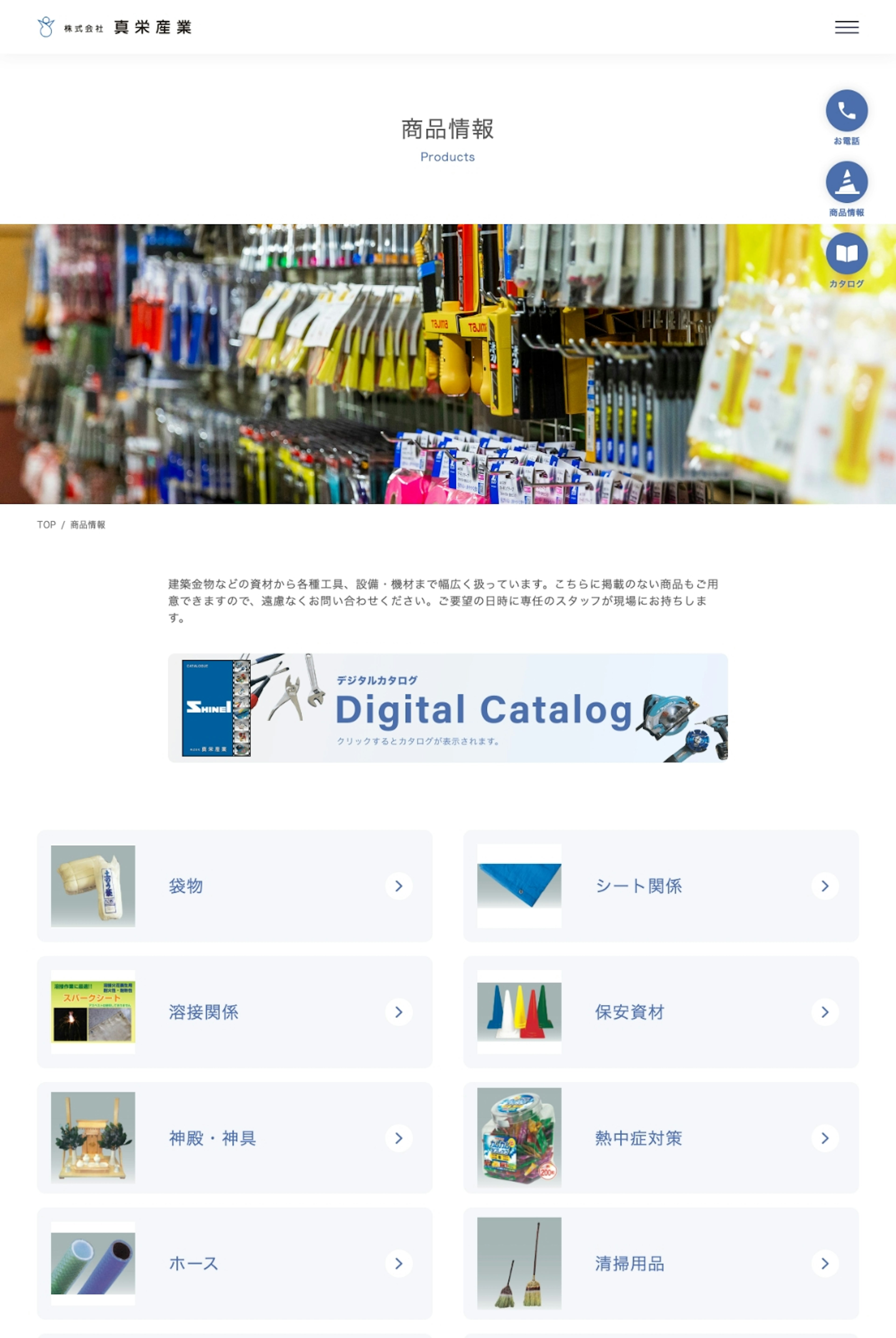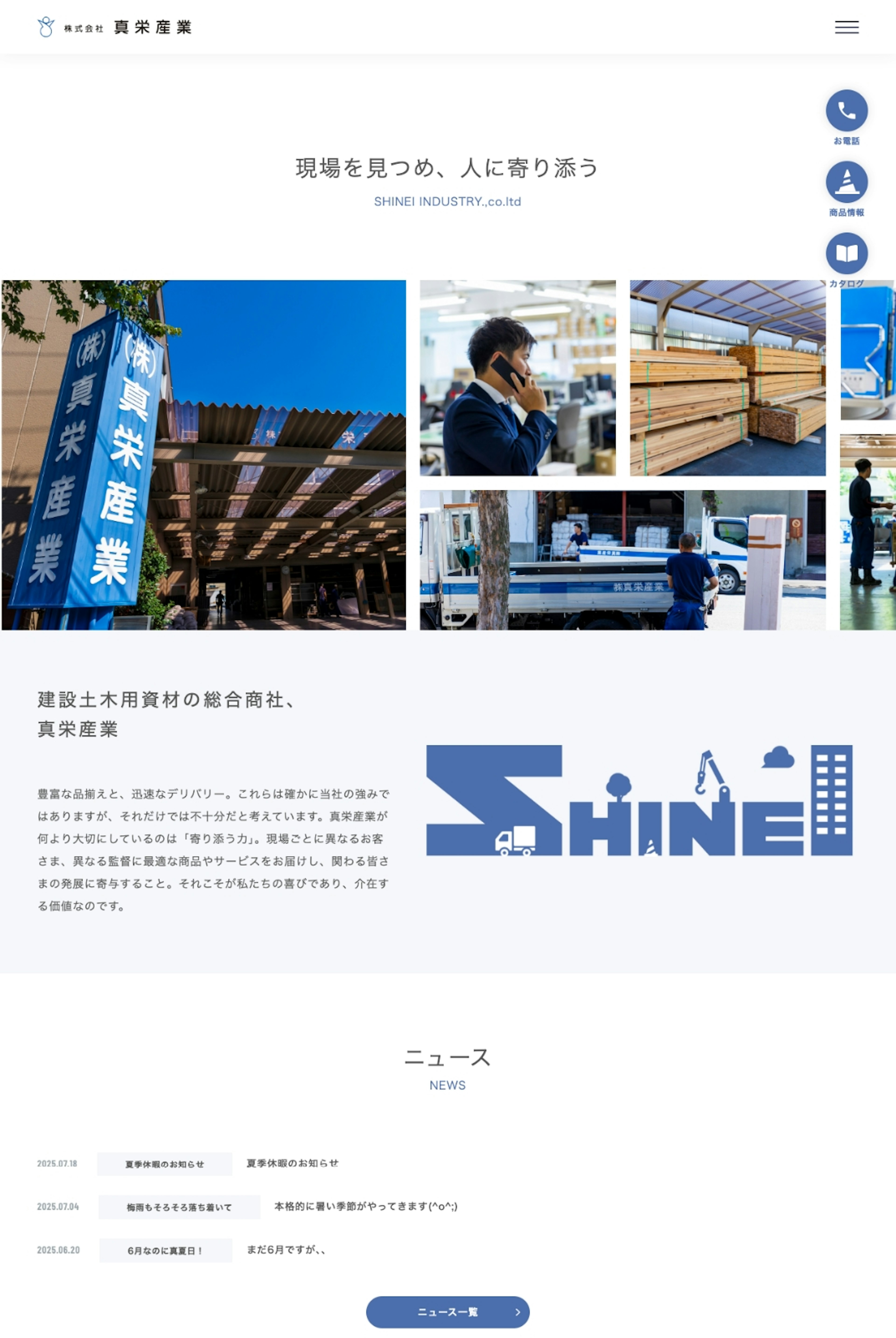 建設資材の販売から施工、不動産まで手掛ける株式会社真栄産業さまのコーポレートサイトを制作いたしました。
