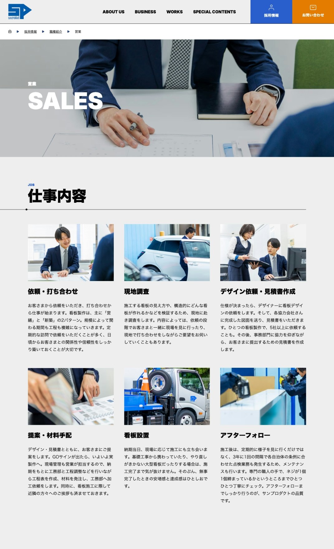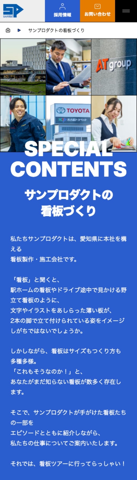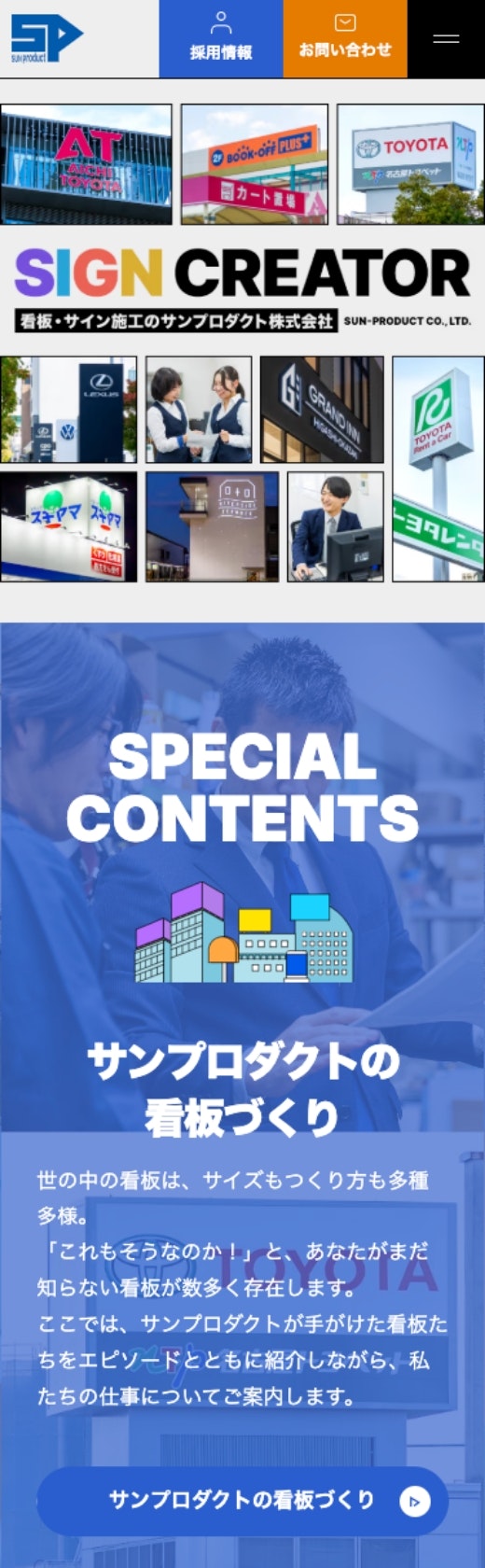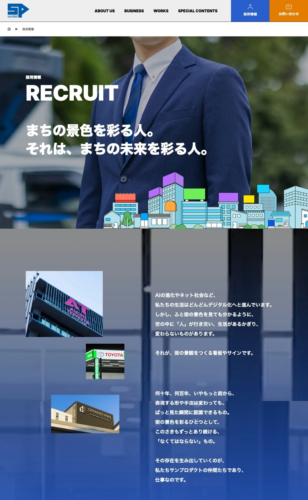 サンプロダクト株式会社さまは、建物の屋上や壁面に取り付けられる大型の看板も多く手掛けられており、いわゆる「看板」という言葉からでは、仕事内容がイメージしづらいのではないかと考えました。