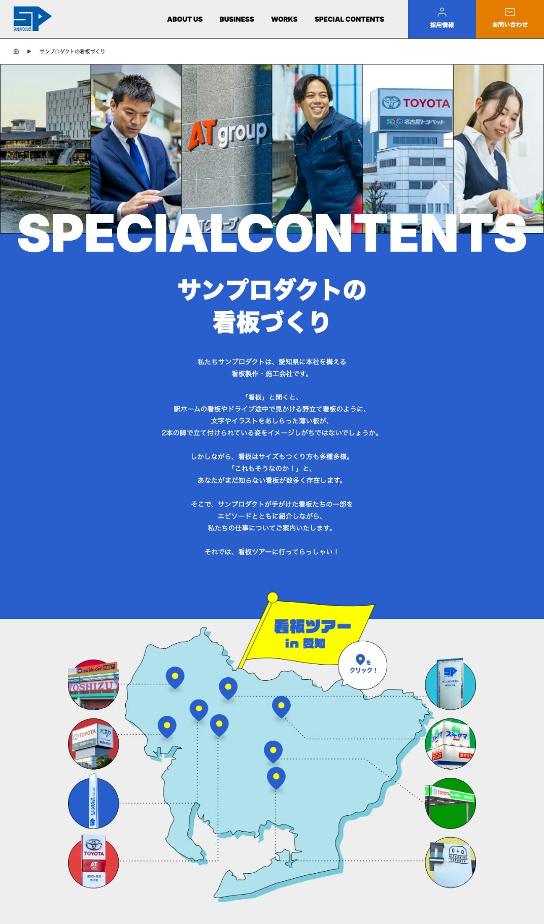『看板ツアー in 愛知』では、愛知県内に限定したサンプロダクト株式会社さまの実績を製作当時のエピソードとともに紹介することで、仕事内容の理解・やりがいの訴求と合わせて、愛知県で働くことへの解像度アップを図っています。