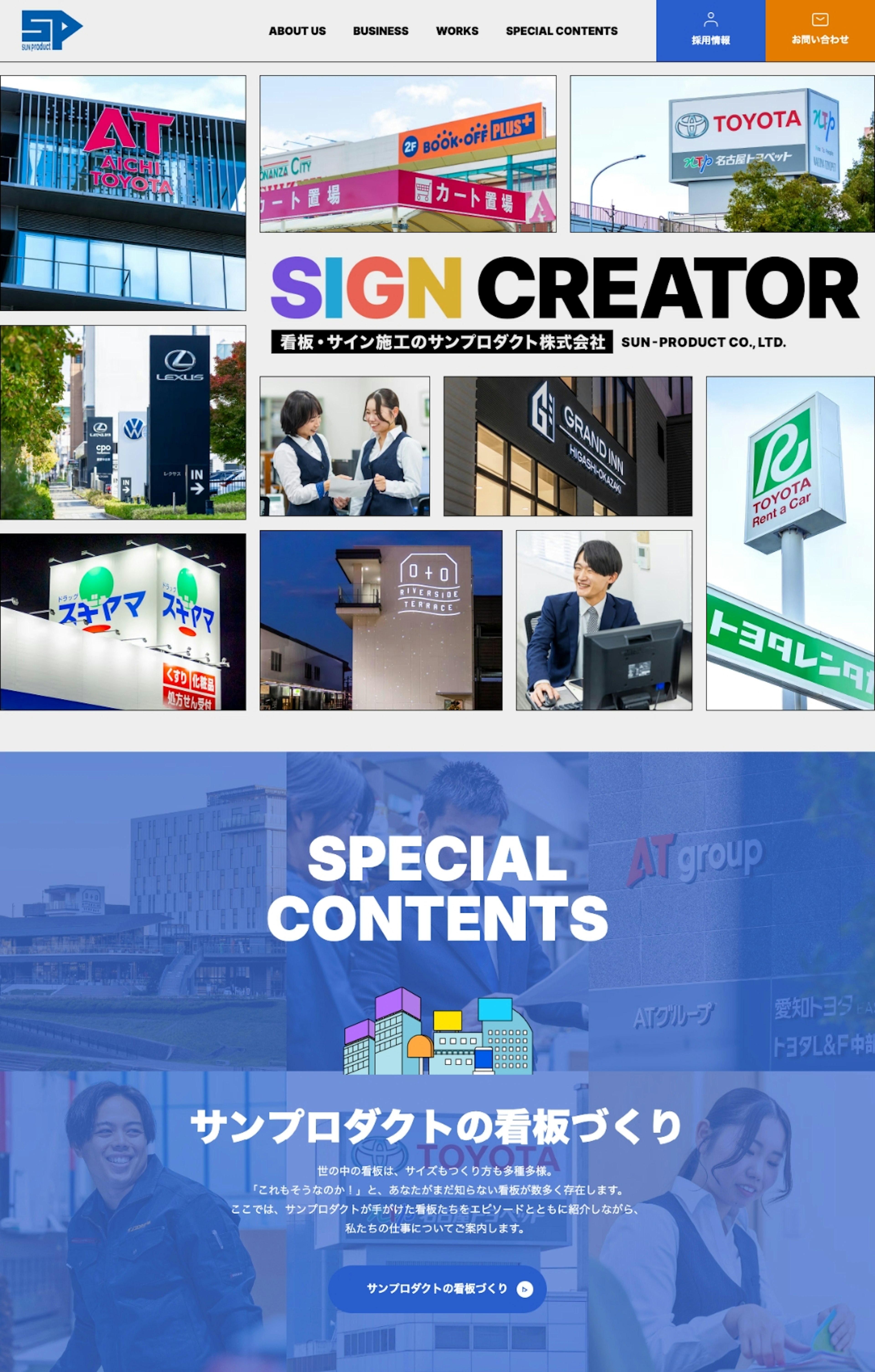 サンプロダクト株式会社さまは、建物の屋上や壁面に取り付けられる大型の看板も多く手掛けられており、いわゆる「看板」という言葉からでは、仕事内容がイメージしづらいのではないかと考えました。