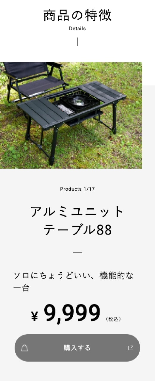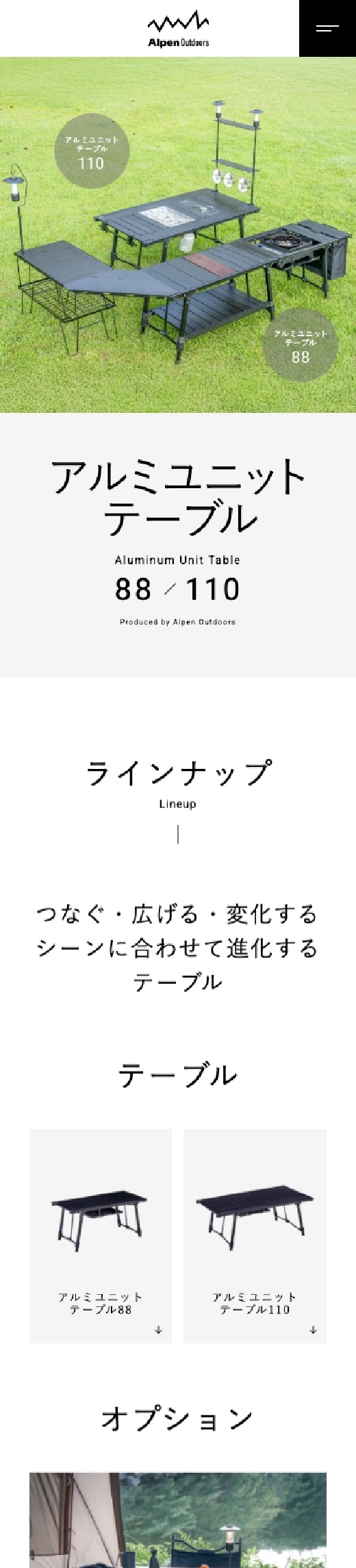 株式会社アルペンさまが展開するプライベートブランド「Alpen Outdoors」の大人気商品「アルミユニットテーブル」シリーズのブランドサイトを制作いたしました。