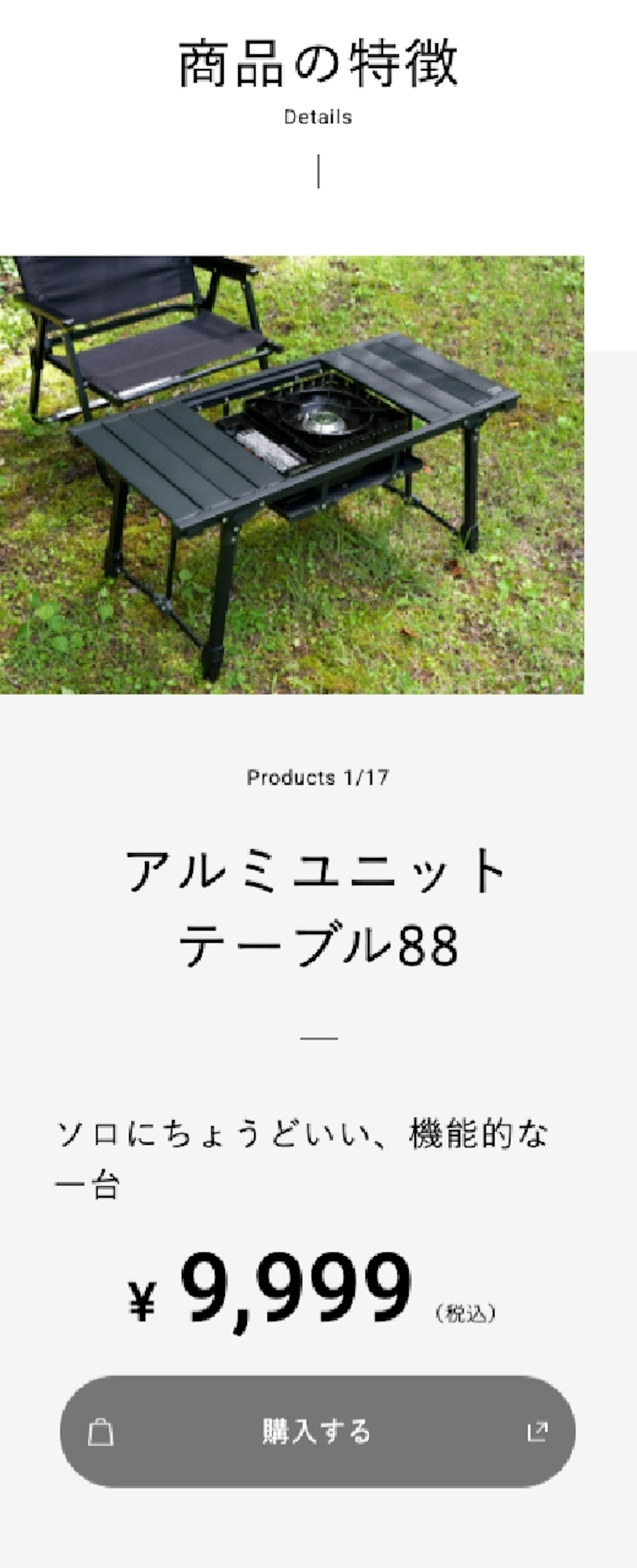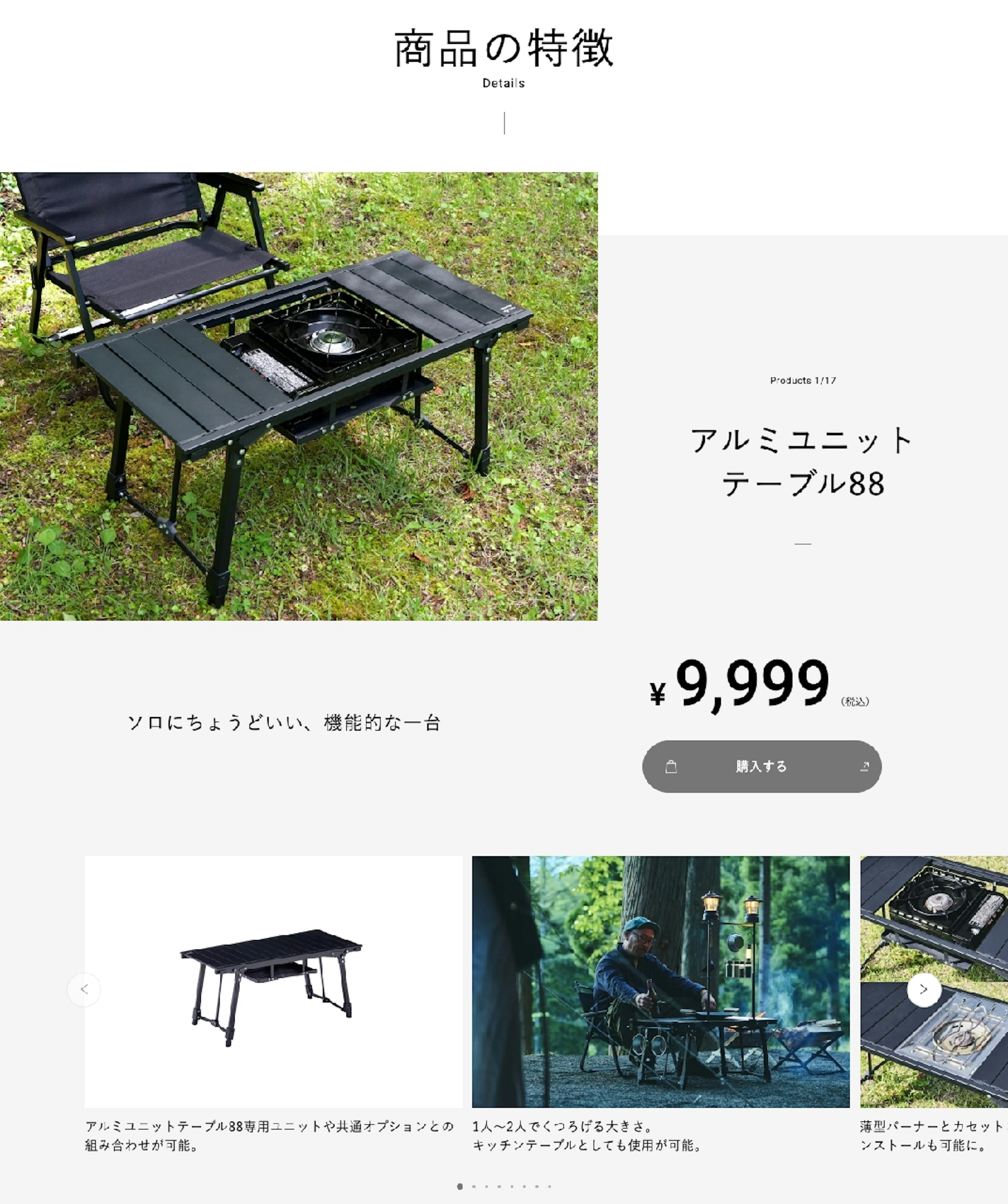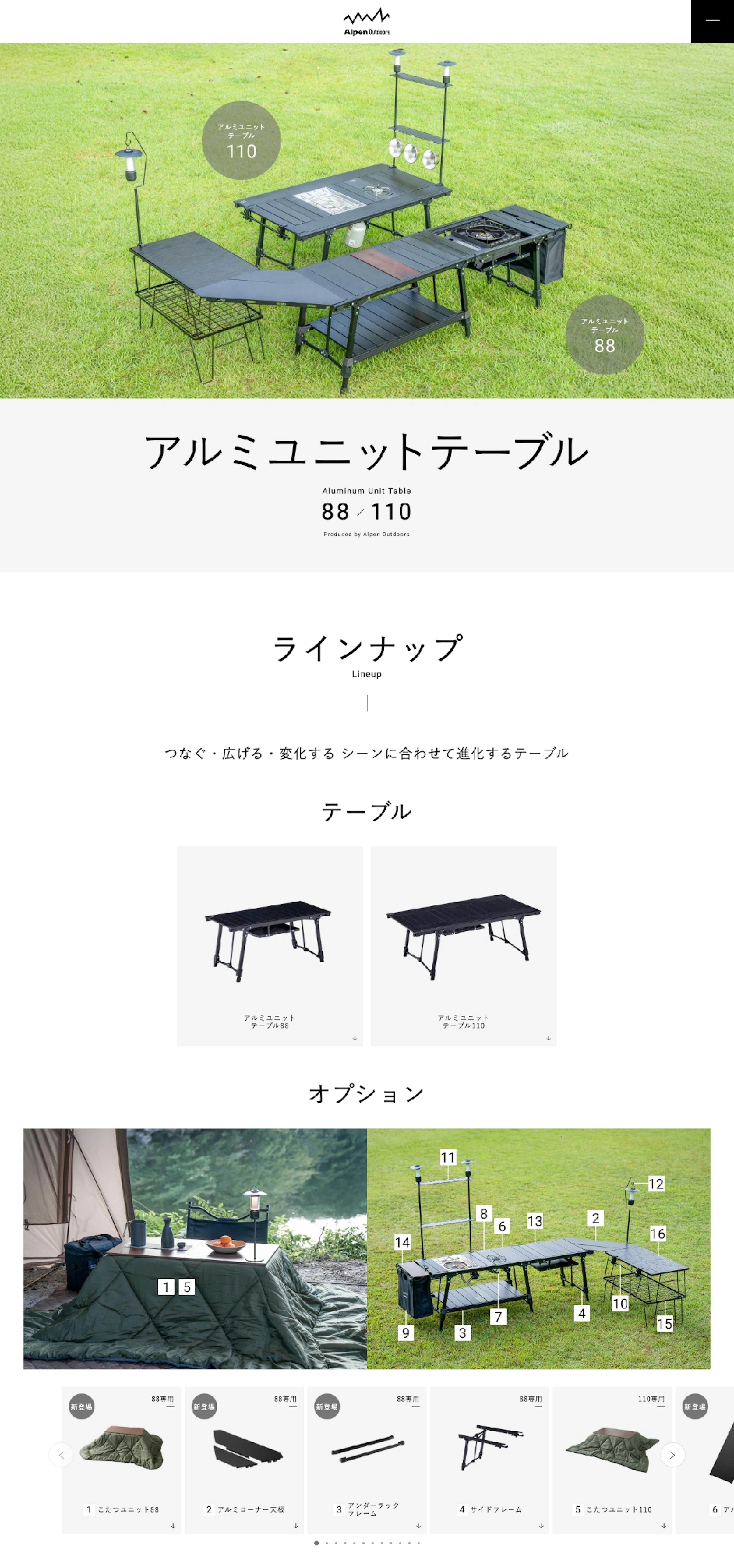 株式会社アルペンさまが展開するプライベートブランド「Alpen Outdoors」の大人気商品「アルミユニットテーブル」シリーズのブランドサイトを制作いたしました。