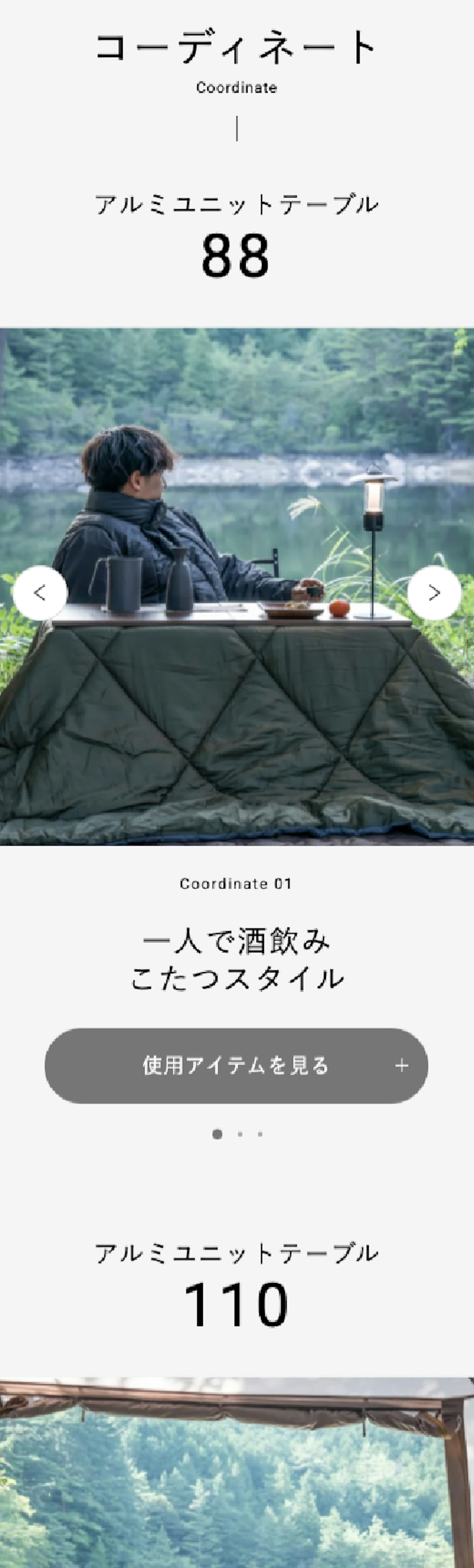 公開後も、新商品の発売に合わせてキャンプ場で商品を撮影し、Webサイトに掲載するなど継続した運用を行っています。