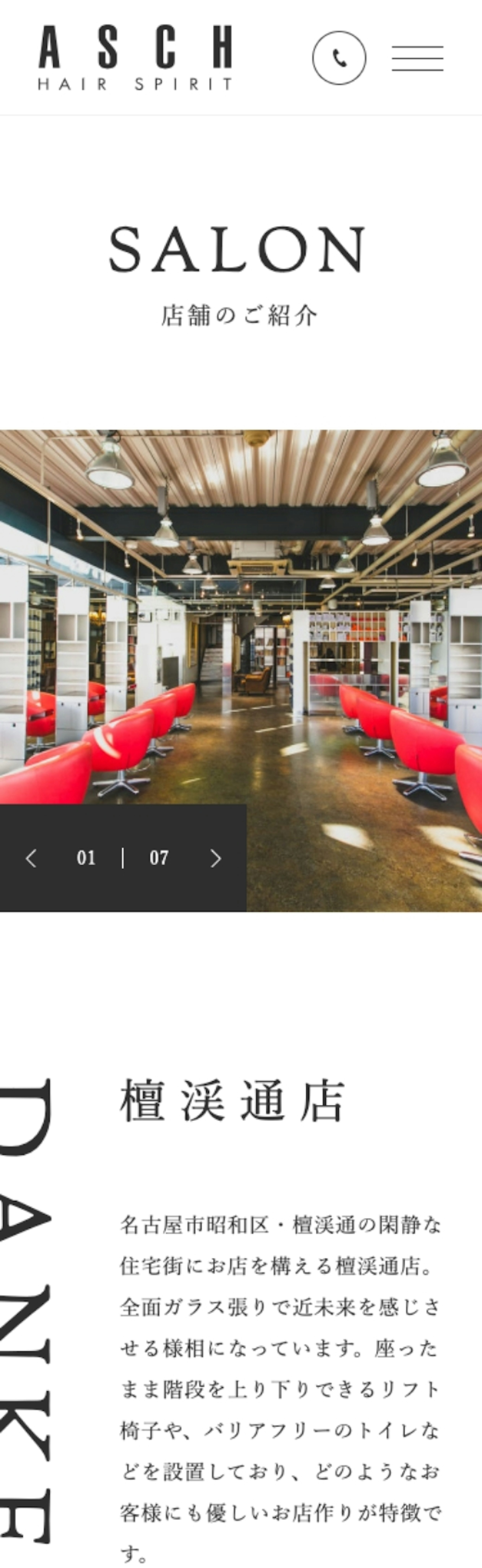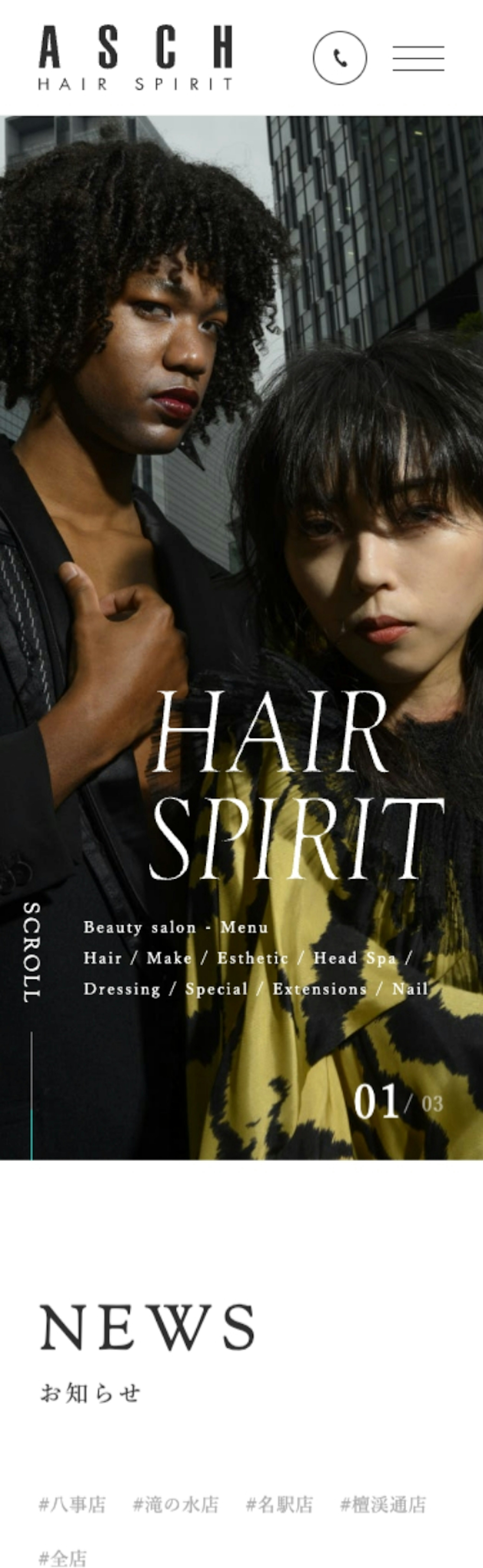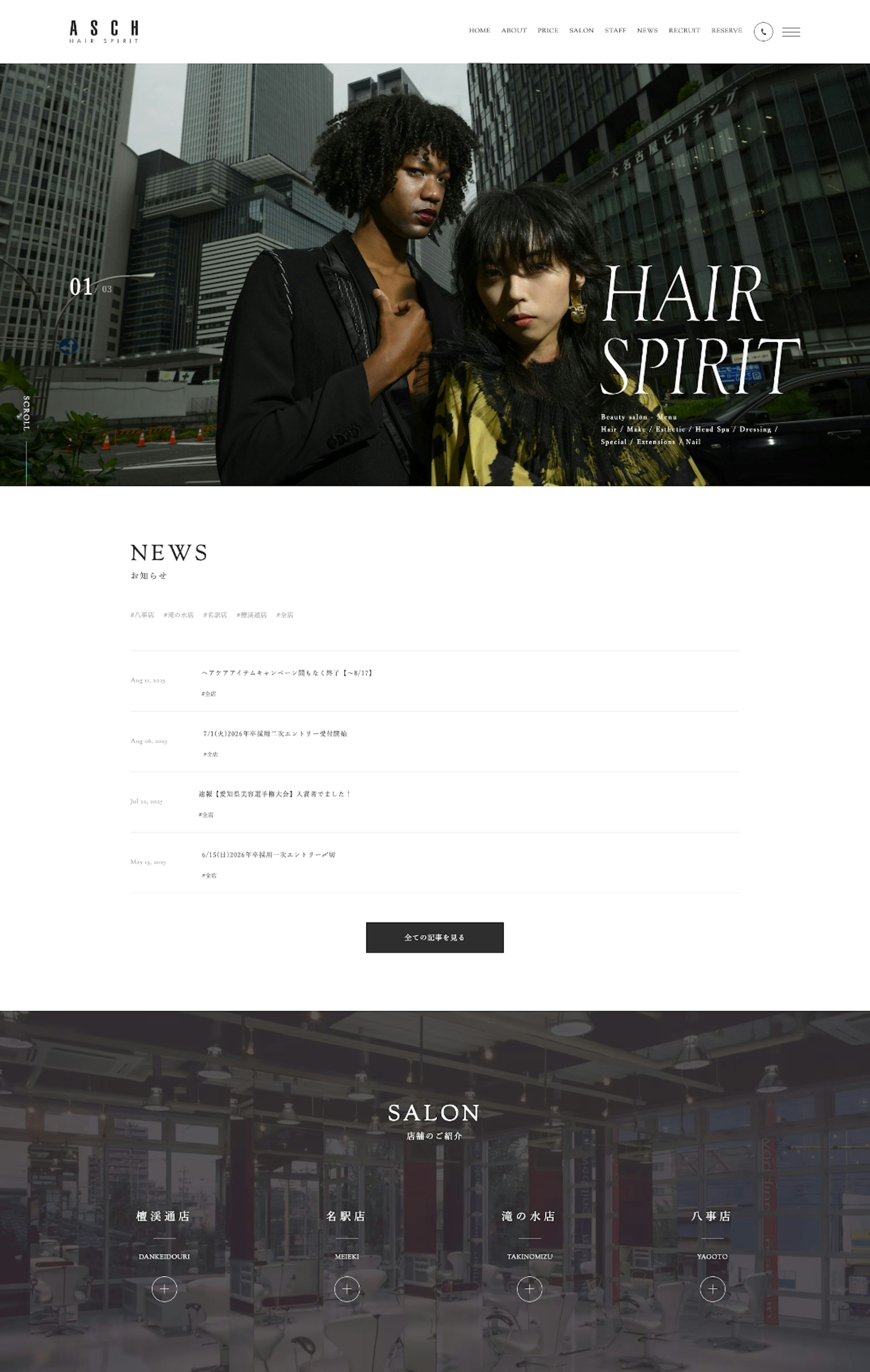 ASCH HAIR SPIRITが持つプロフェッショナルなイメージを表現するため、モノトーンを基調としたシンプルかつ洗練されたデザインを採用しました。