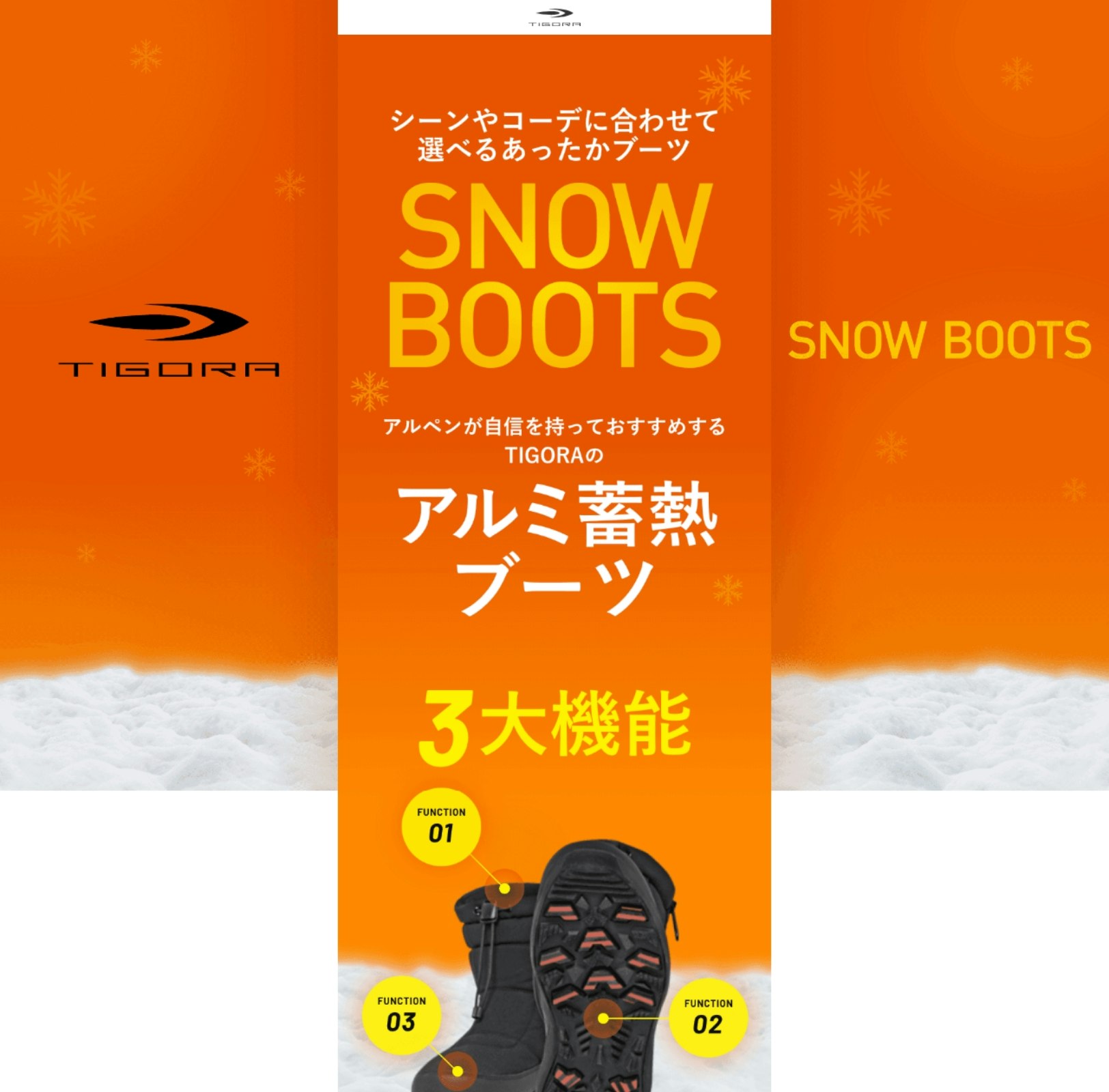 株式会社アルペンさまのプライベートブランド「TIGORA」が展開しているスノーブーツ「アルミ蓄熱」シリーズの販売を訴求するLPを制作いたしました。
