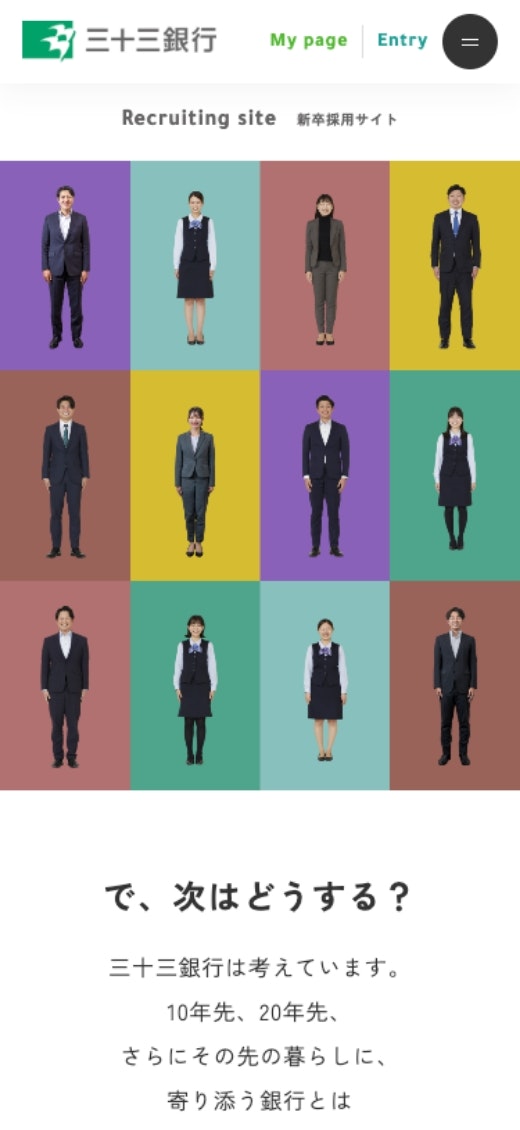 「さまざまな挑戦をしてみたい熱い人」にフォーカスしたいという想いを反映し、「で、次はどうする?」をキャッチコピーに、未来へ一歩を踏み出す学生に響く新卒採用サイトを提案させていただきました。(※原稿は広告代理店さまがご担当)