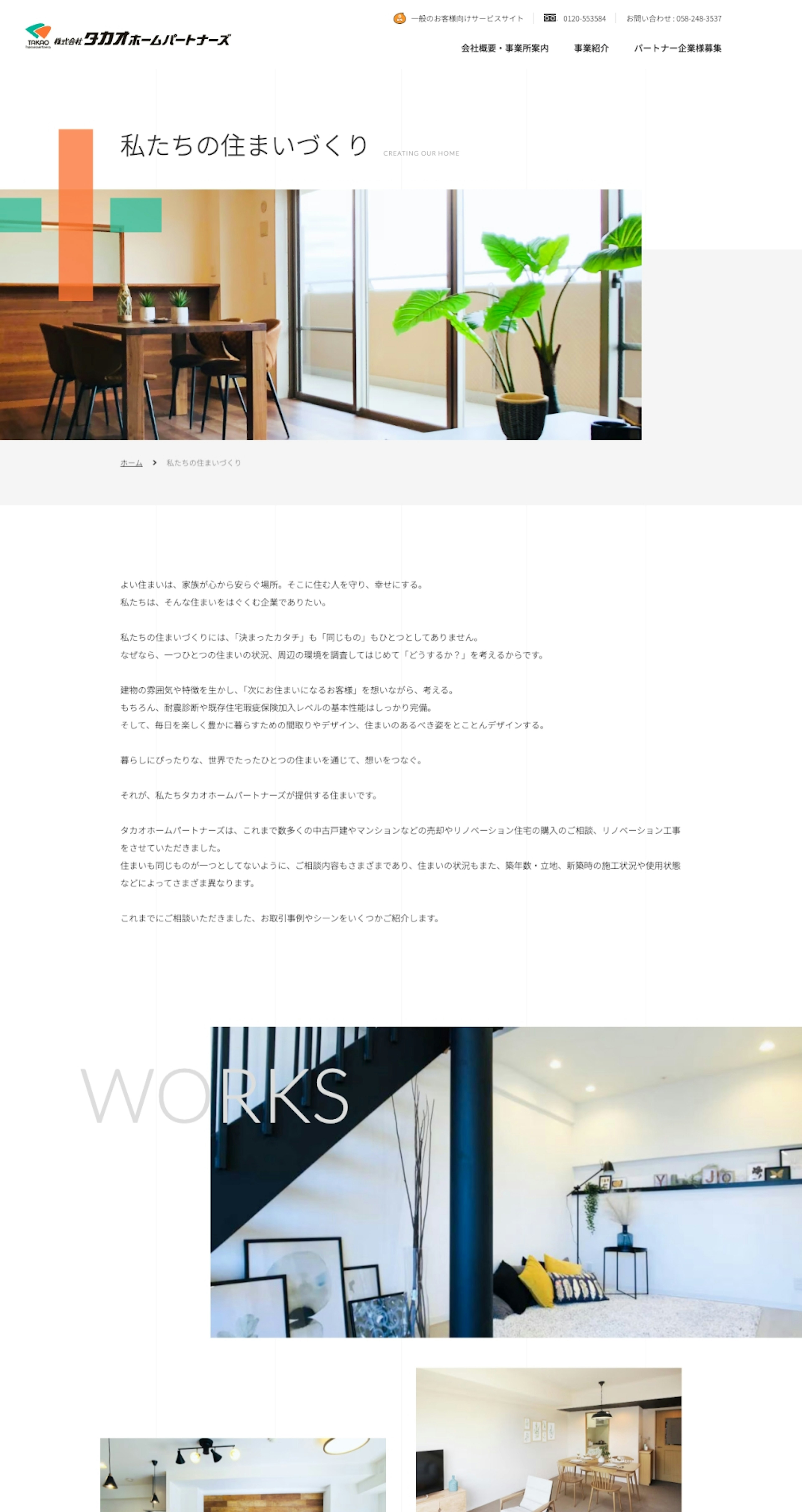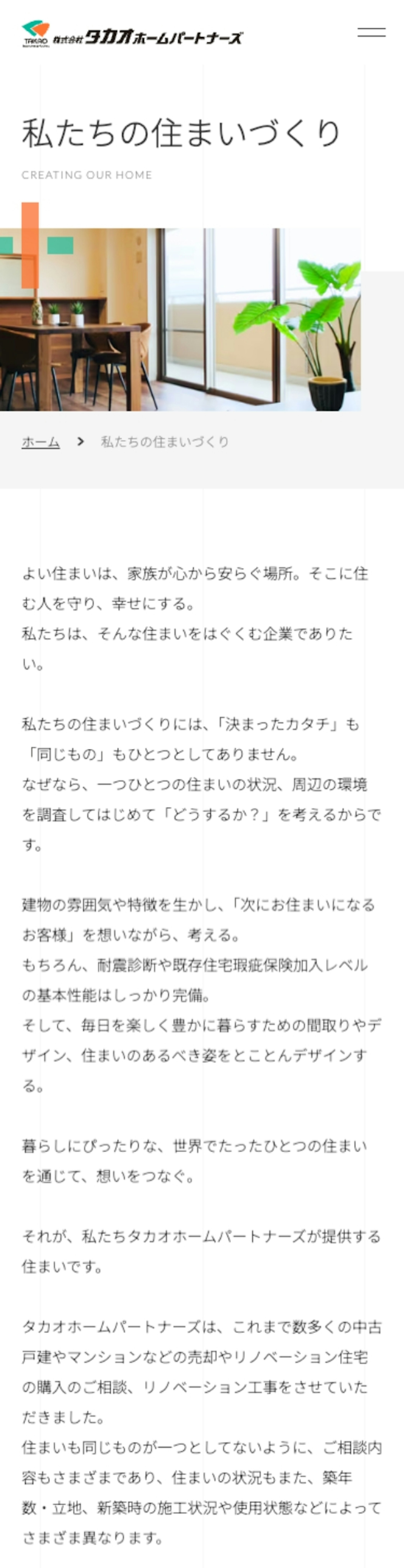 株式会社タカオホームパートナーズさまは、中古住宅の買取・再販事業を中心に、リフォーム・リノベーション事業を行う不動産会社です。旧サイトでは 「事業としての個性が伝わりにくい」「協力会社やパートナーへのメリットが十分に発信できていない」といった課題をご相談いただき、企業サイトのフルリニューアルを提案いたしました。