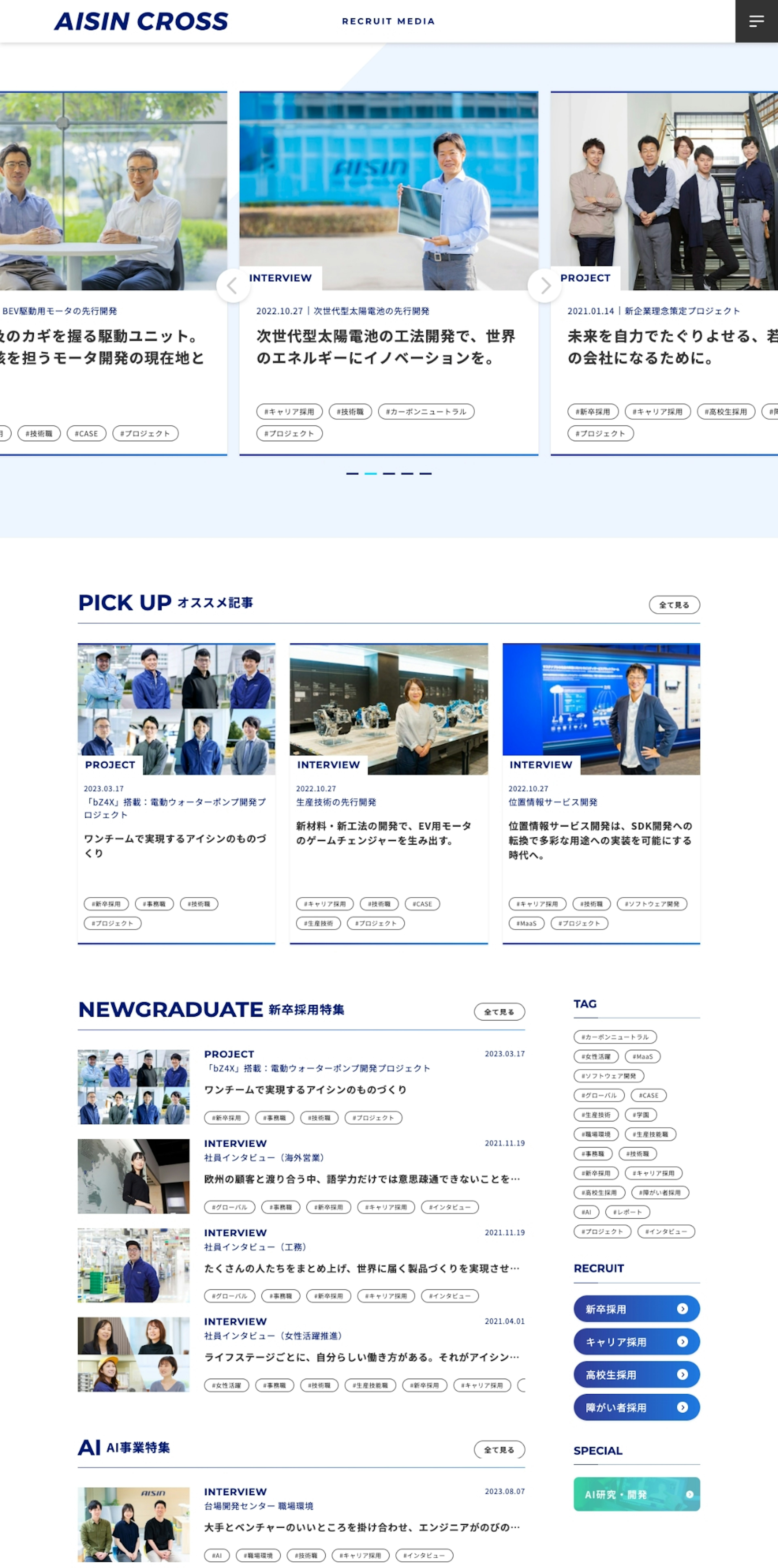自動車部品業界のグローバルサプライヤーである株式会社アイシンさまの、採用オウンドメディア「AISIN CROSS」を担当いたしました。