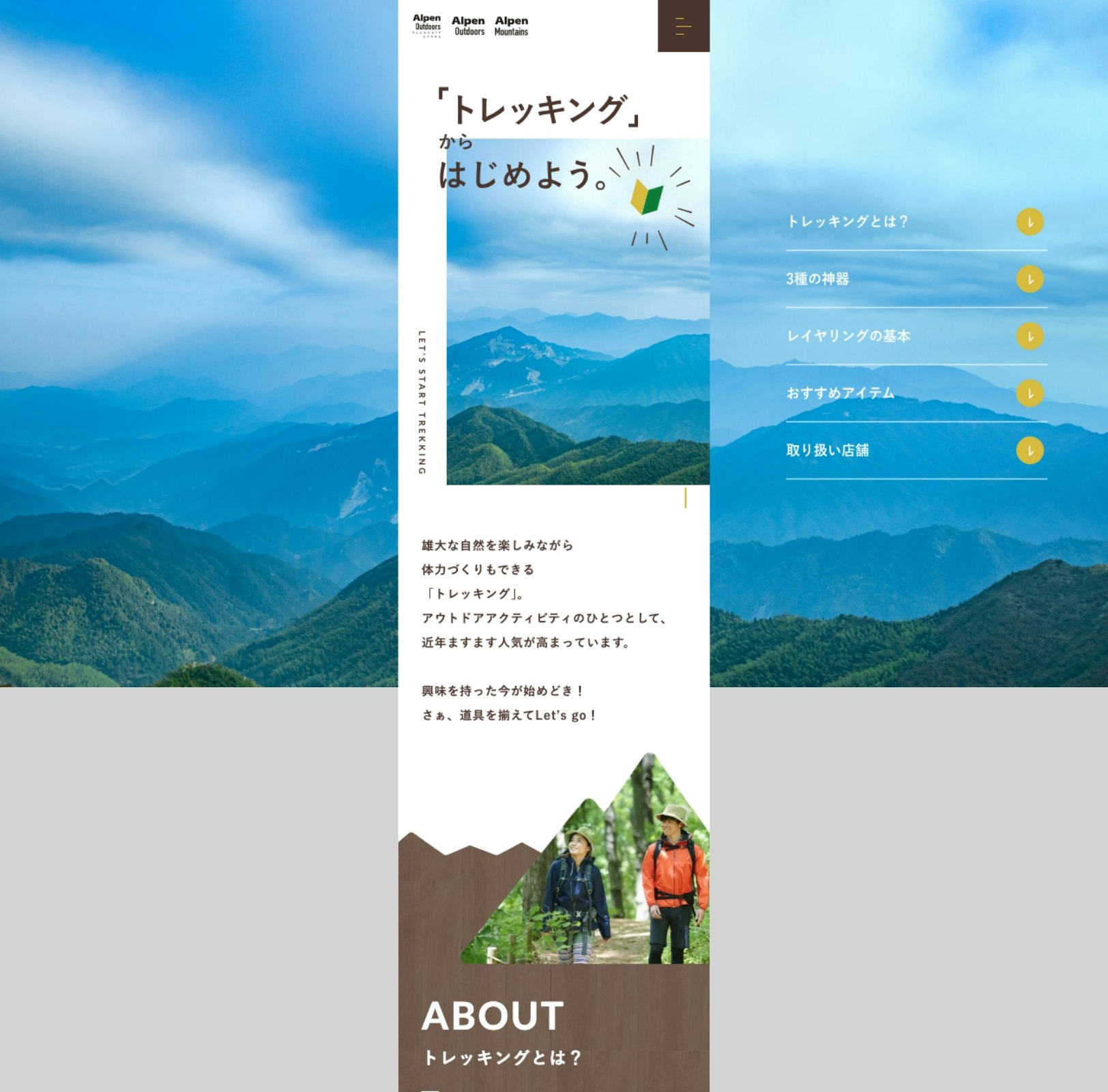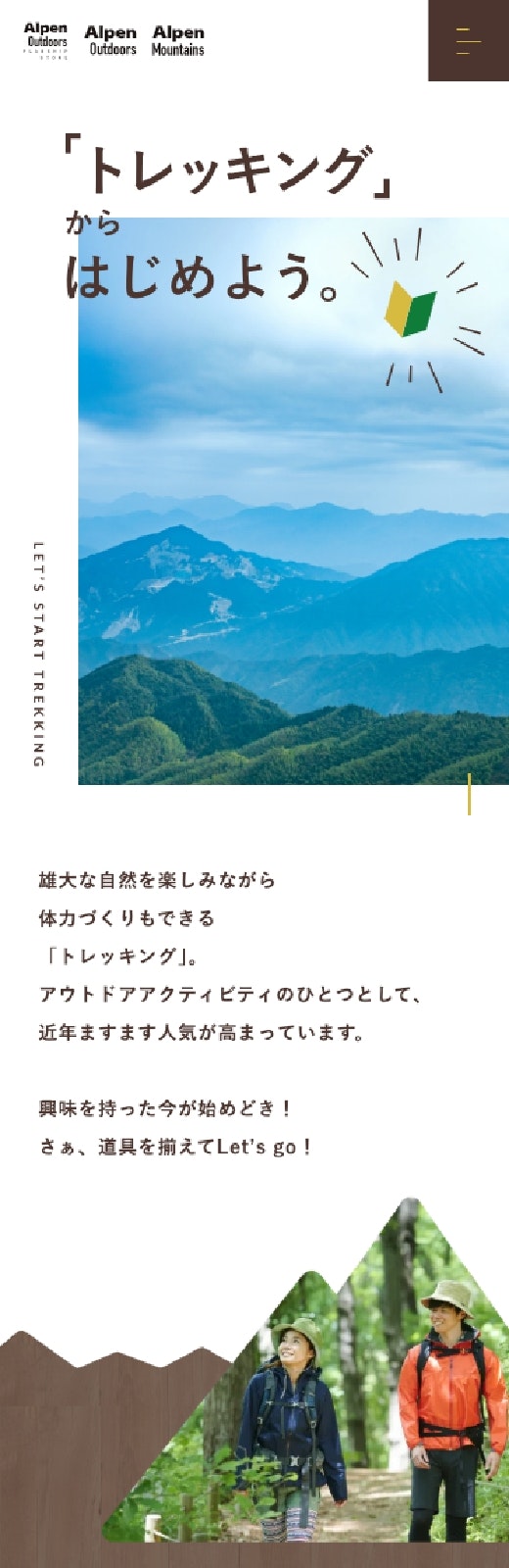 株式会社アルペンさまで取り扱うトレッキング用品の販売訴求として、LPを制作いたしました。