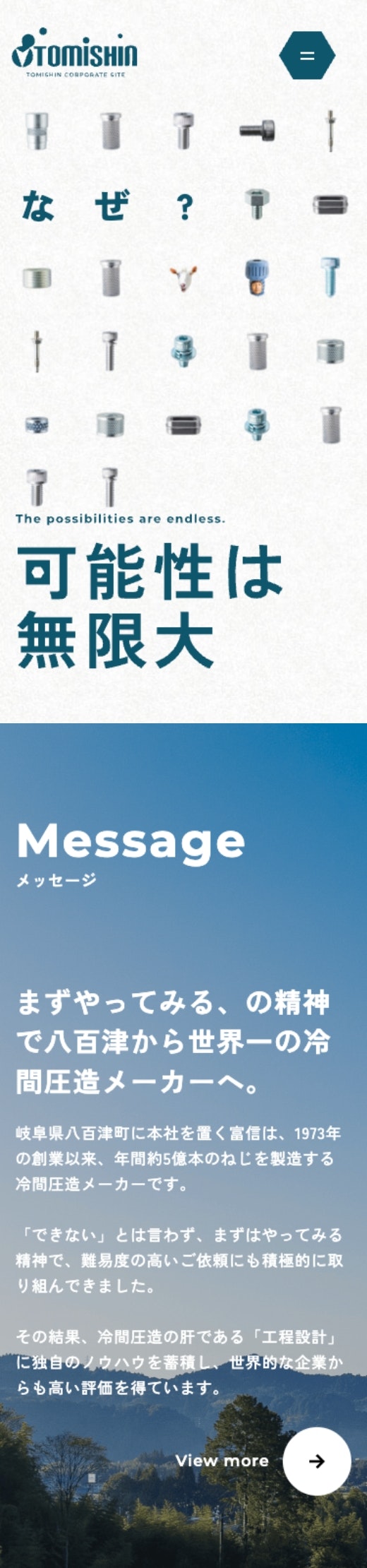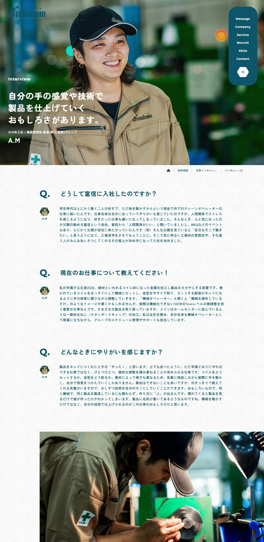 年間約5億本のねじを製造する株式会社富信さまは、岐阜県から世界一を目指す冷間圧造メーカーです。採用活動における課題を抱えていたため、企業サイトとしての役割も担いつつ、とくに「採用」に重きを置いてのサイトリニューアルを行いました。