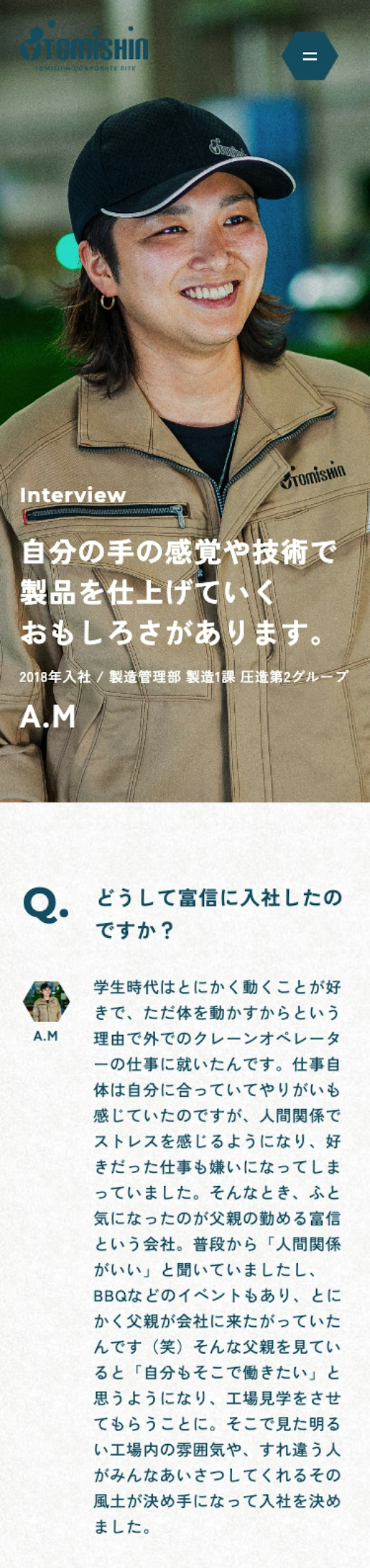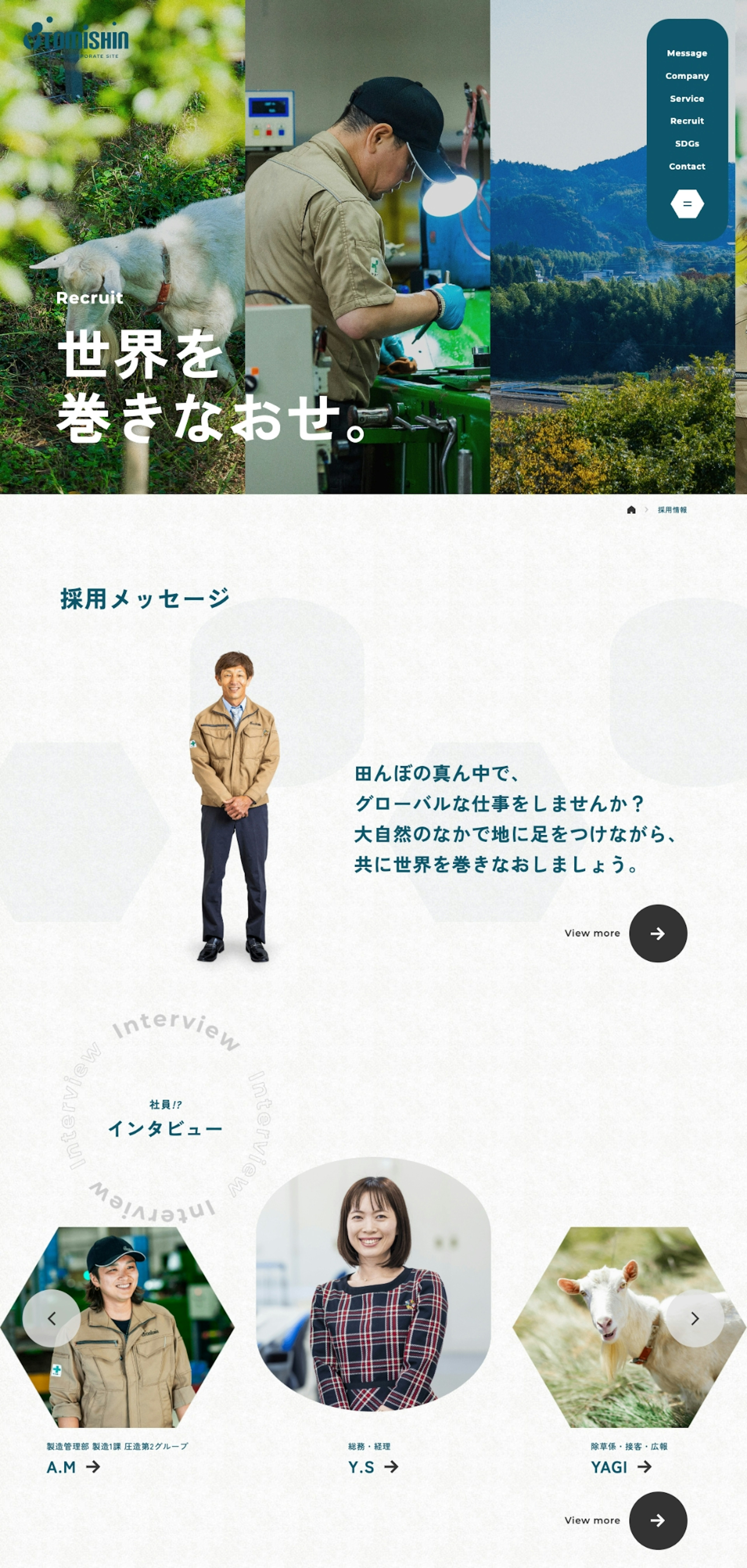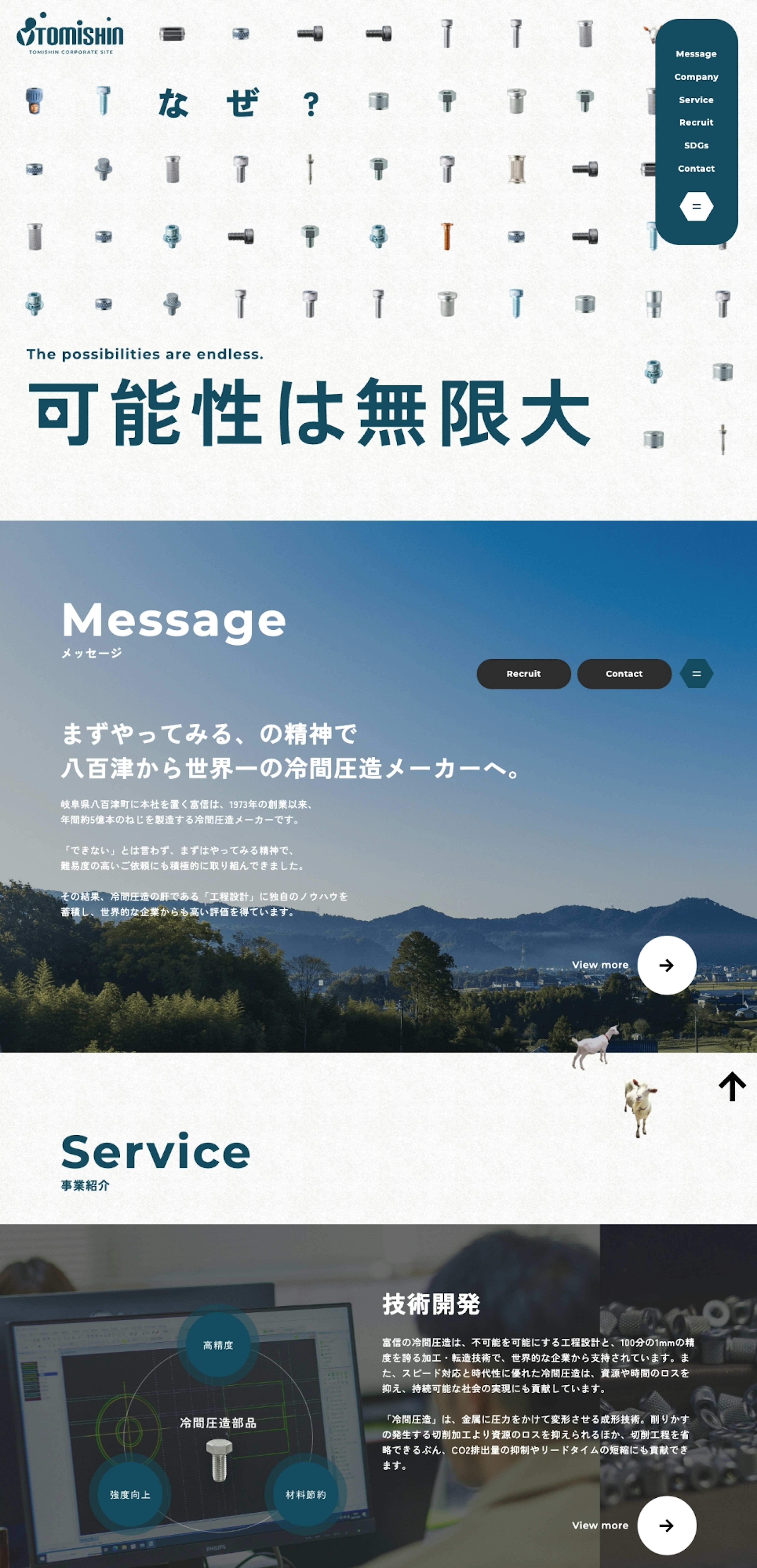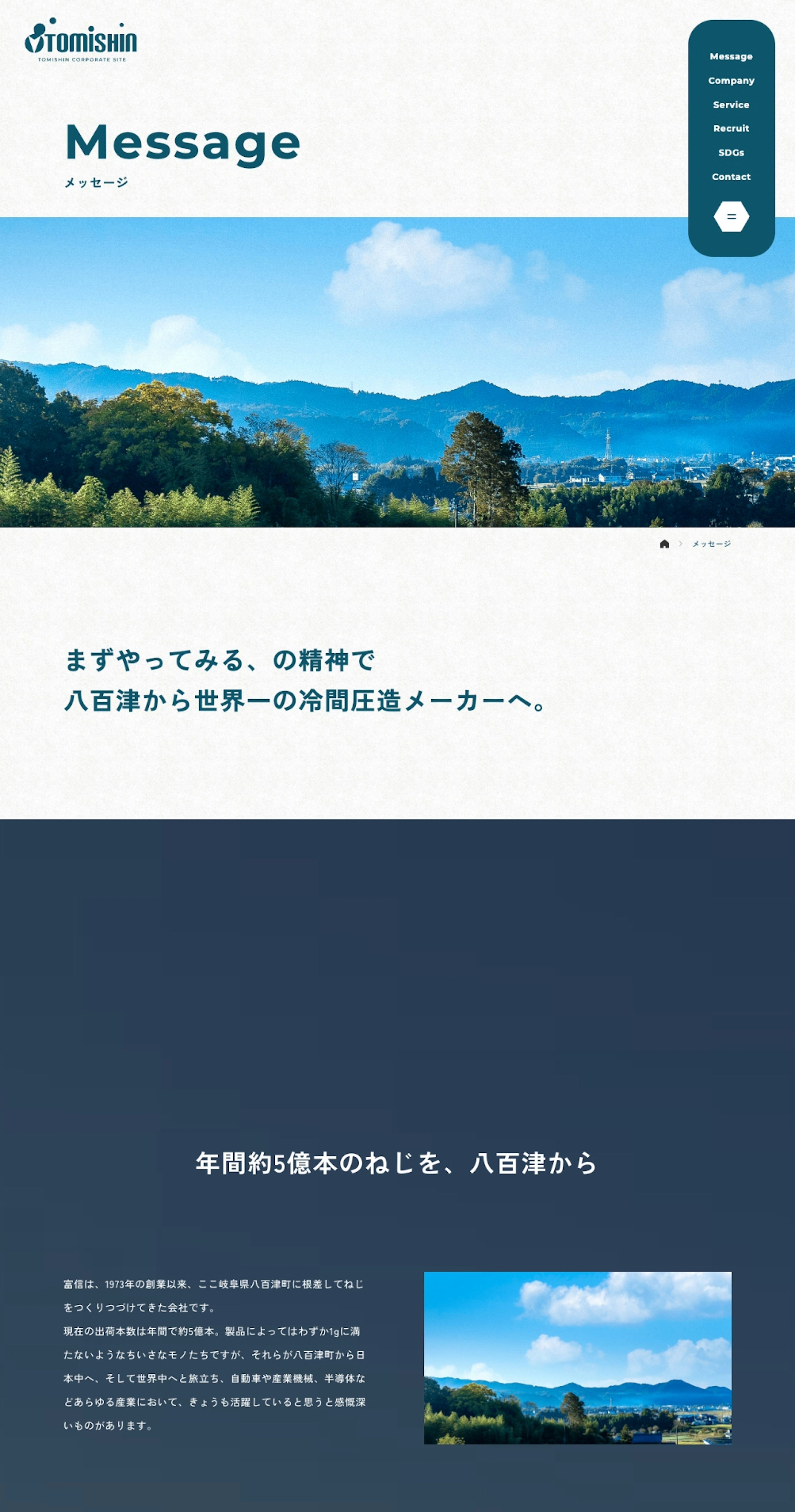 年間約5億本のねじを製造する株式会社富信さまは、岐阜県から世界一を目指す冷間圧造メーカーです。採用活動における課題を抱えていたため、企業サイトとしての役割も担いつつ、とくに「採用」に重きを置いてのサイトリニューアルを行いました。