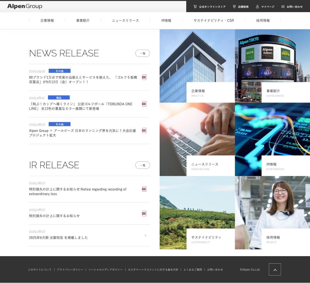 日本を代表するスポーツ小売企業である株式会社アルペンさまのコーポレートサイトを制作いたしました。