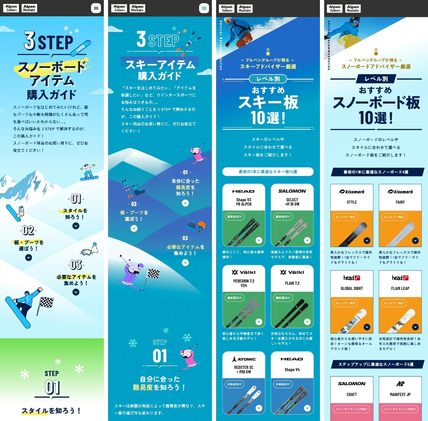 株式会社アルペンさまのスノーボード・スキー用品の販売訴求として、LPを4つ制作いたしました。